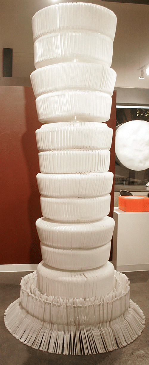 Styrofoam, plastic hangers, zip ties & pvc pipe. 115" x 55" x55"